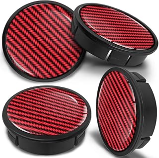 SkinoEu 4 x 60mm Universal Schwarz Rot Kohlenstoff Alufelgen Nabenkappen Felgen Kappen Felgendeckel Radkappen Radnabendeckel Nabendeckel Felgenkappen CX 13