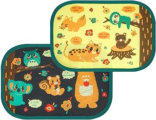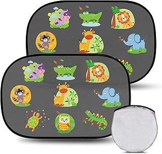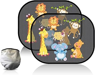 Selbsthaftende Auto Sonnenblenden,SenPuSi Sonnenblenden für Kinder Baby mit UV Schutz 55+ Selbsthaftende Autofenster Sonnenblende Schützt Baby und Kinder vor Sonne und spendet Schatten 2 Stück (Zoo)