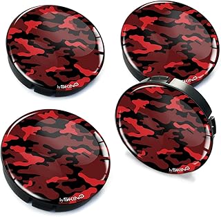 SkinoEu® 4 x 60mm Silikon Nabenkappen Kappen Camouflage Rot Felgendeckel Radkappen Radnabendeckel Nabendeckel Auto Tuning C 19