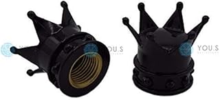 YOU.S Alu Kronen Ventilkappen Schwarz mit Dichtung Ventil Kappen Abdeckung für Auto PKW LKW Motorrad Fahrrad (2 Stück)