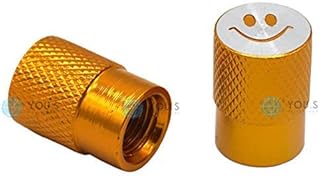 YOU.S Alu Smiley Ventilkappen Gold mit Dichtung Ventil Kappen Abdeckung für Auto PKW LKW Motorrad Fahrrad (2 Stück)