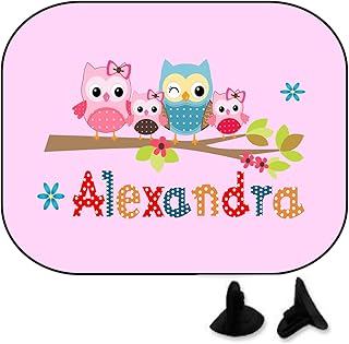wolga-kreativ Auto Sonnenschutz und Sonnenblende Kinder Mädchen Junge Eulenfamilie mit Name für Baby und Kind personalisiert Wunschname Bedruckt
