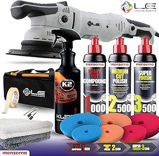 detailmate Auto Politur Set - Liquid Elements T2000 V3 Exzenter Poliermaschine + Menzerna Politur Set: Control Cleaner HC1000, MC 2500, FF 3000, Carnauba Wachs + 4 Premium Pad + 3M Band + Poliertuch