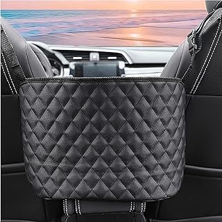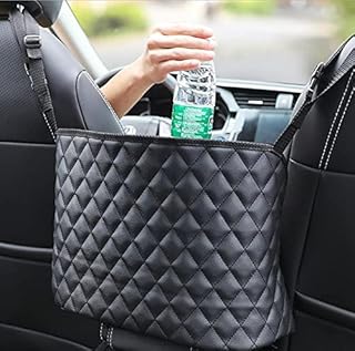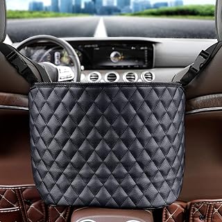 ANLEM Auto Netztasche Handtaschen, Car Net Pocket Handtaschenhalter Autositztasche Leder Lederhandtaschenhalter Autotaschen-Aufbewahrungsorganisator zwischen den Vordersitzen für Auto und LKW-Schwarz