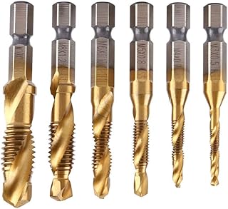 YOUTHINK Gewindeschneider-Set, Gewindebohrer, M3-M10, beschichteter HSS-Bohrer und Gewindebohrer, 6,35 mm Sechskantschaft, 6 Stück